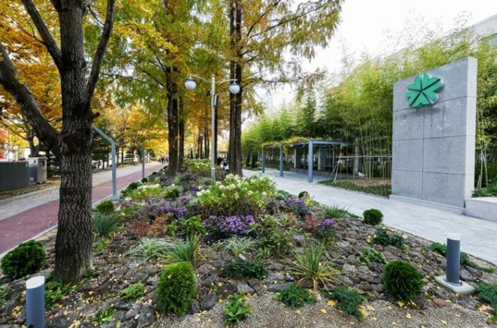 새롭게 조성된 시민애뜰은 에메랄드그린, 블루엔젤 등 다양한 수목과 수국 등 계절별 화단이 어우러져 사계절 내내 변화가 있는 경관을 선보인다.