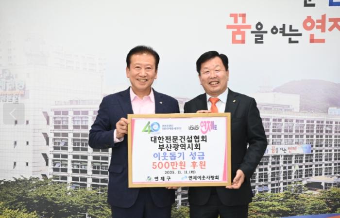• 연제구, 대한전문건설협회 부산광역시회로부터 이웃돕기 성금 기탁받아