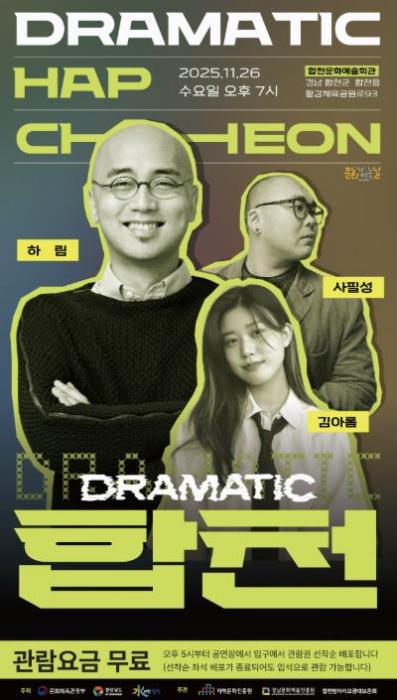 • (사)합천밤마리오광대보존회는 11월 26일 오후 7시 합천문화예술회관에서 ‘드라마틱 합천–OST콘서트’를 마련해 군민에게 색다른 음악 경험을 선사한다.