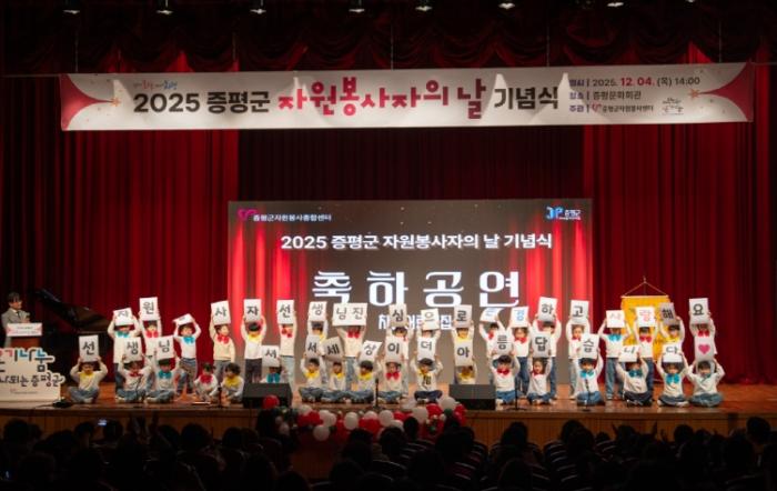 • 증평군자원봉사종합센터(센터장 김남순)는 4일 증평문화회관에서 자원봉사자 200여 명이 참석한 가운데 ‘2025년 증평군 자원봉사자의 날 기념식’을 개최했다.