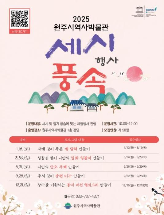 • [한식일보] 원주시역사박물관은 다가오는 동지를 앞두고 오는 21일 ‘동지 세시풍속 행사 프로그램’을 운영한다.