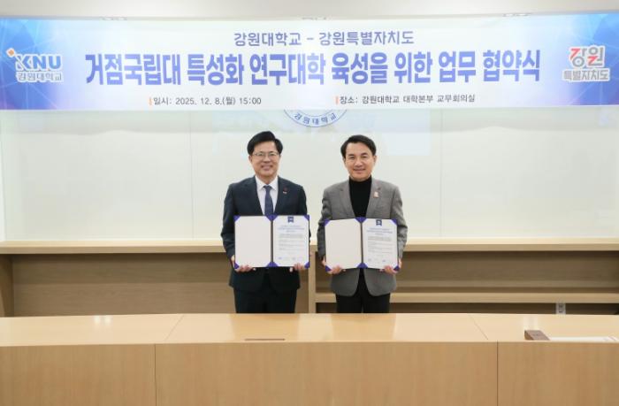 [한식일보] 강원특별자치도는 12월 8일 강원대학교 대학본부 3층 교무회의실에서 강원대학교와'거점국립대 특성화 연구대학 육성을 위한 업무협약'을 체결했다고 밝혔다.