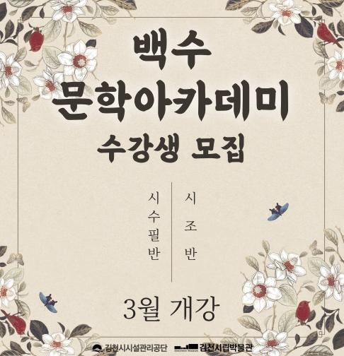 • 김천시시설관리공단(이사장 김재광)은 오는 3월부터 백수문학관과 김천시립박물관이 연계한 교육 프로그램 ‘백수문학아카데미’를 운영한다.