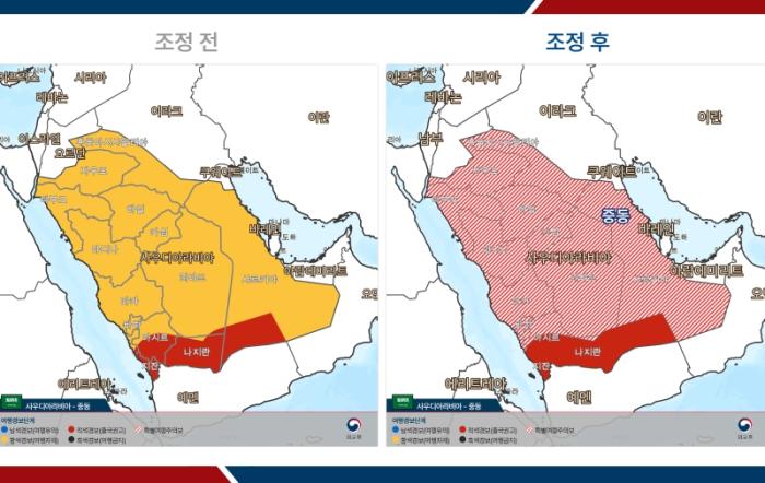 - 사우디아라비아: 2단계(여행자제) → 특별여행주의보 / 3단계(출국권고) → 3단계(출국권고)
