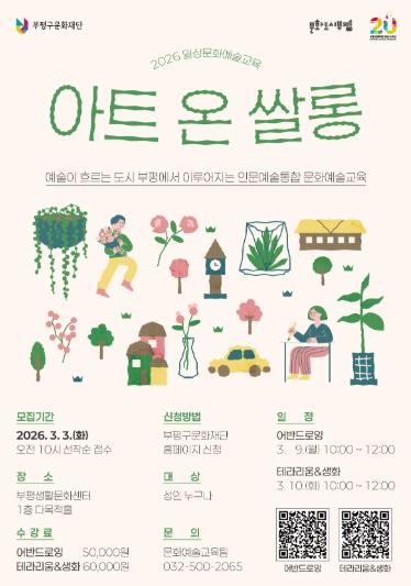 • [한식일보] 부평구 문화재단이 3월부터 시민을 위한 ‘2026년도 문화예술교육 사업’을 본격적으로 운영한다고 밝혔다.