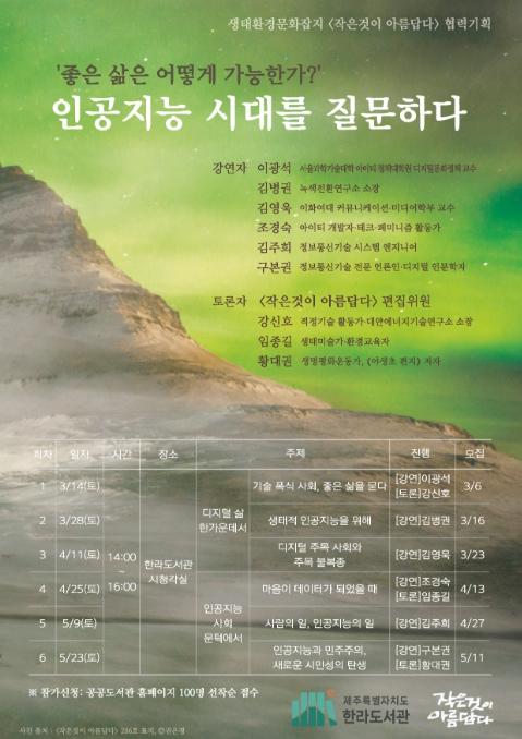 [한식일보] 제주특별자치도 한라도서관은 인공지능(AI)이 일상이 된 시대에 기술과 자연, 인간의 공존 해법을 모색하는 특별 기획 프로그램 '인공지능 시대를 질문하다'를 개최한다.