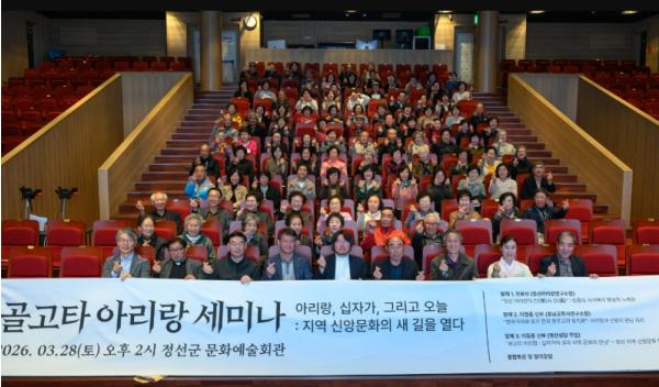 정선성당은 3월 28일 정선문화예술회관에서 군민과 신자, 문화예술 관계자 등 150여 명이 참석한 가운데 ‘골고타 아리랑 세미나’를 열고, 정선아리랑에 담긴 삶의 정서와 신앙적 의미를 연결하는 다양한 논의를 진행했다.