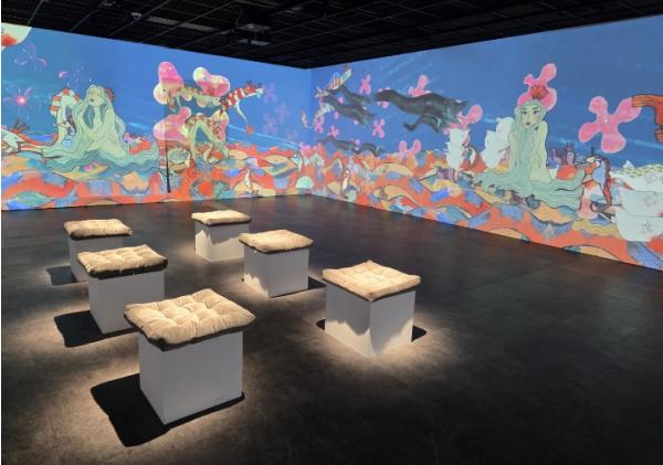이번 '재히어니, 몽환의 틈'은 주재현 작가가 1982년부터 1984년 사이 집중적으로 제작한 작품을 중심으로 구성됐으며, 기이한 생명체와 물고기, 인물 형상 등 독창적인 이미지들을 통해 작가의 상상 세계를 입체적으로 드러낸다. 특히 작품을 단순히 감상하는 방식에서 벗어나, 이미지들이 생성되던 감각과 흐름을 체험할 수 있도록 기획된 점이 특징이다. 전시장 내에는 가로, 세로 약 12m 규모의 몰입형 미디어아트 공간이 조성되어, 작품 이미지들이 떠다니고 흐르는 장면을 통해 관람객이 마치 주재현 작가의 머릿속을 직접 거니는 듯한 경험을 제공한다.
