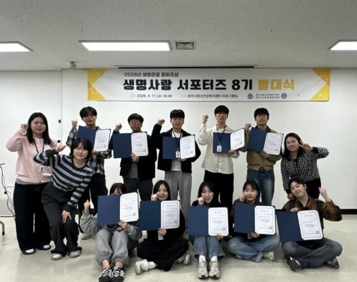 • [한식일보] 원주시자살예방센터는 지난 17일 자살 예방과 생명 존중 문화 확산을 위한 ‘제8기 생명사랑 서포터즈’ 발대식을 개최했다.