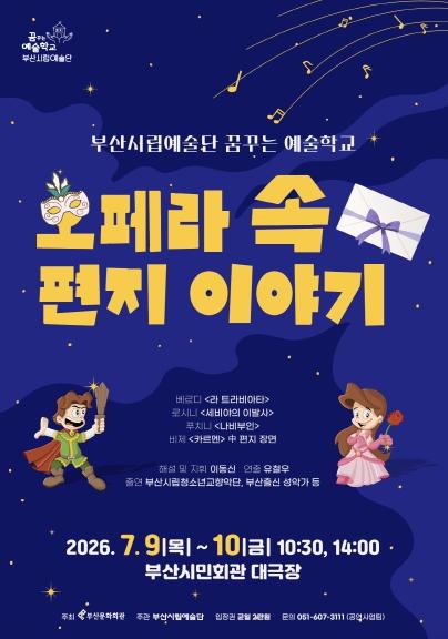 부산시립예술단은 그동안 2022~2023년 '세비야의 이발사', 2024년 '마술피리', 2025년 '헨젤과 그레텔' 등을 통해 부산지역 학생들에게 ‘생애 최초’의 오페라 관람 경험을 선사하며 다양한 문화예술 체험의 기회를 제공해왔다. 올해는 한 작곡가의 작품이 아닌, 서로 다른 개성과 매력을 지닌 4명의 작곡가 작품을 한 무대에서 선보인다는 점에서 더욱 눈길을 끈다.